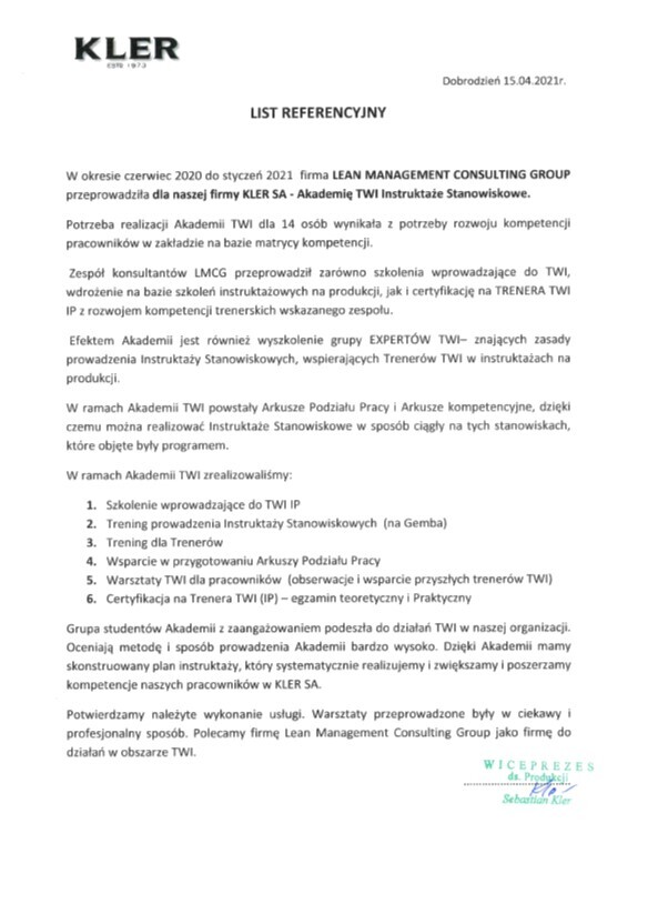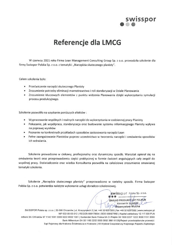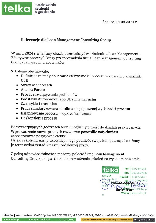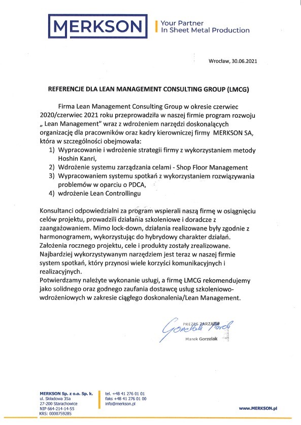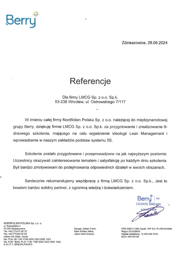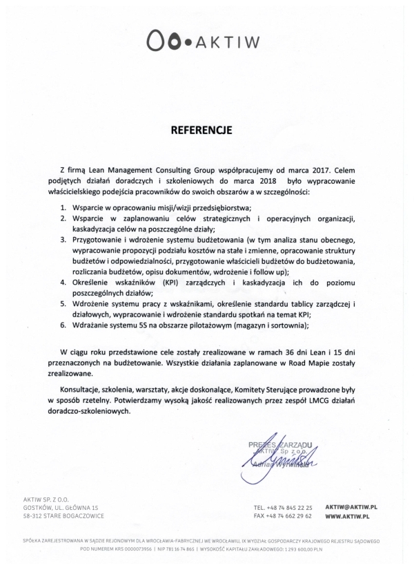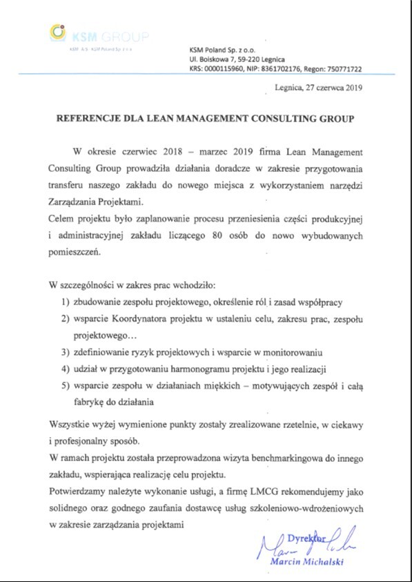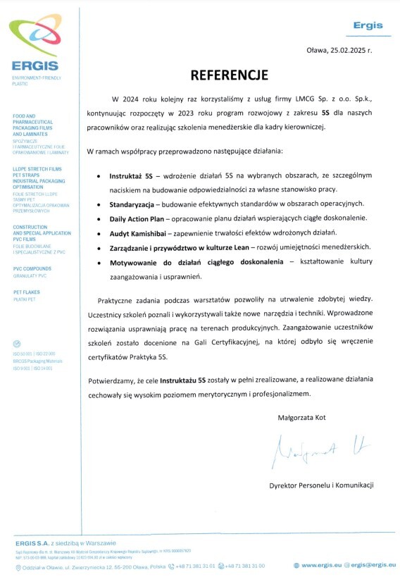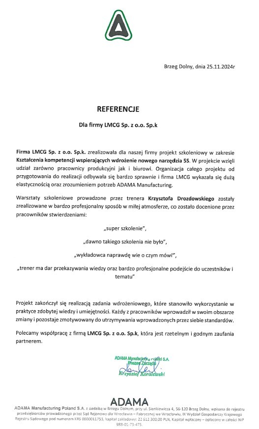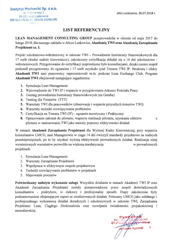 Referencje klientów z branży produkcyjnej, dla których realizowaliśmy projekty oraz szkolenia z zakresu optymalizacji procesów.