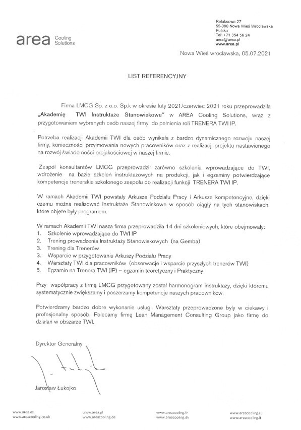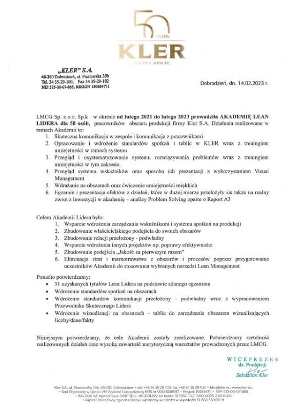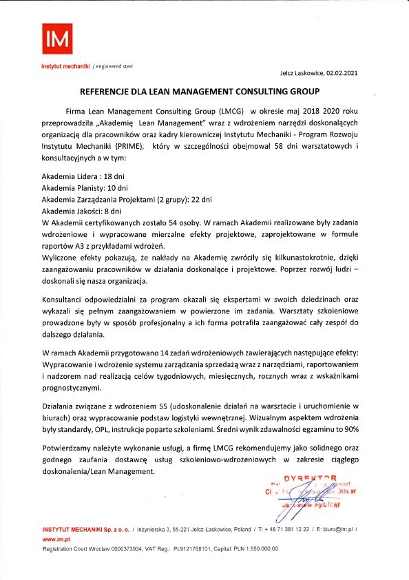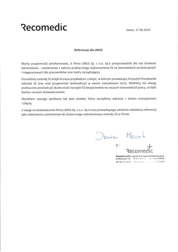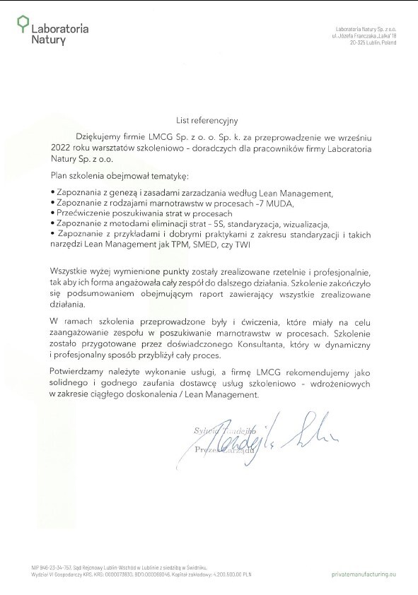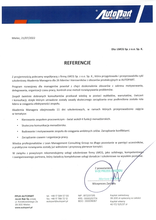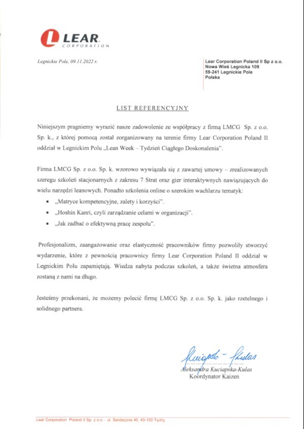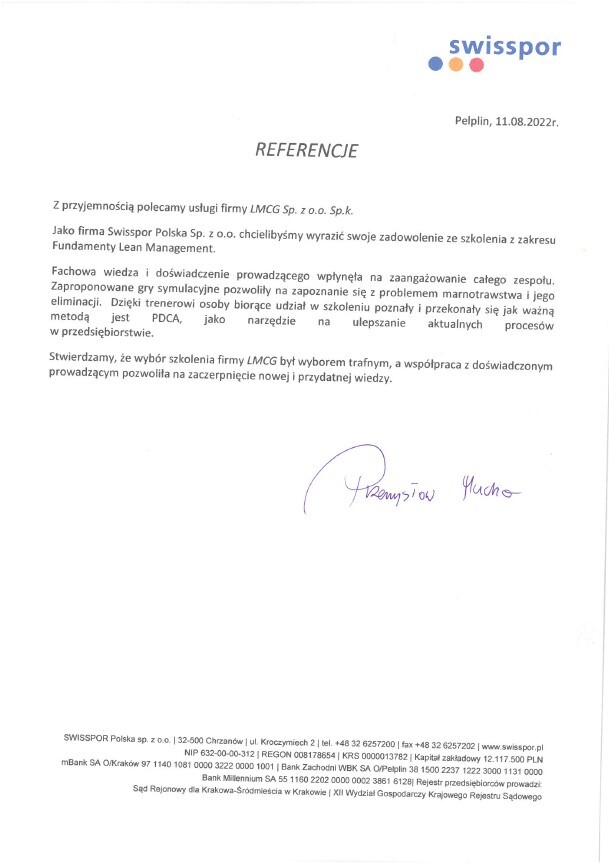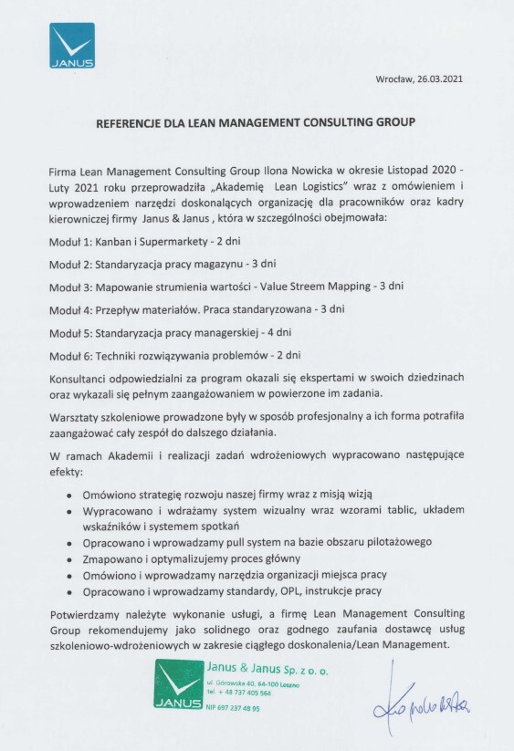 Referencje klientów z branży produkcyjnej, dla których realizowaliśmy projekty oraz szkolenia z zakresu optymalizacji procesów.
