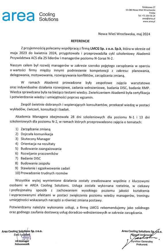 - Opracowanie i wdrożenie standardów spotkań i tablic wraz z treningiem umiejętności w ramach systemu