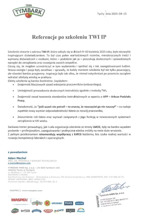 - Egzaminy na Trenera TWI (IP)