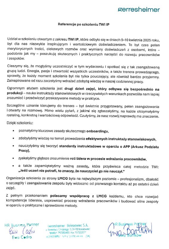 - Warsztaty TWI dla pracowników
